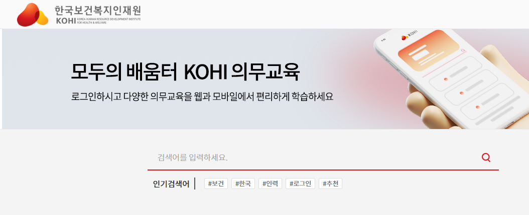 한국보건복지인력개발원 사이버교육 홈페이지 바로가기